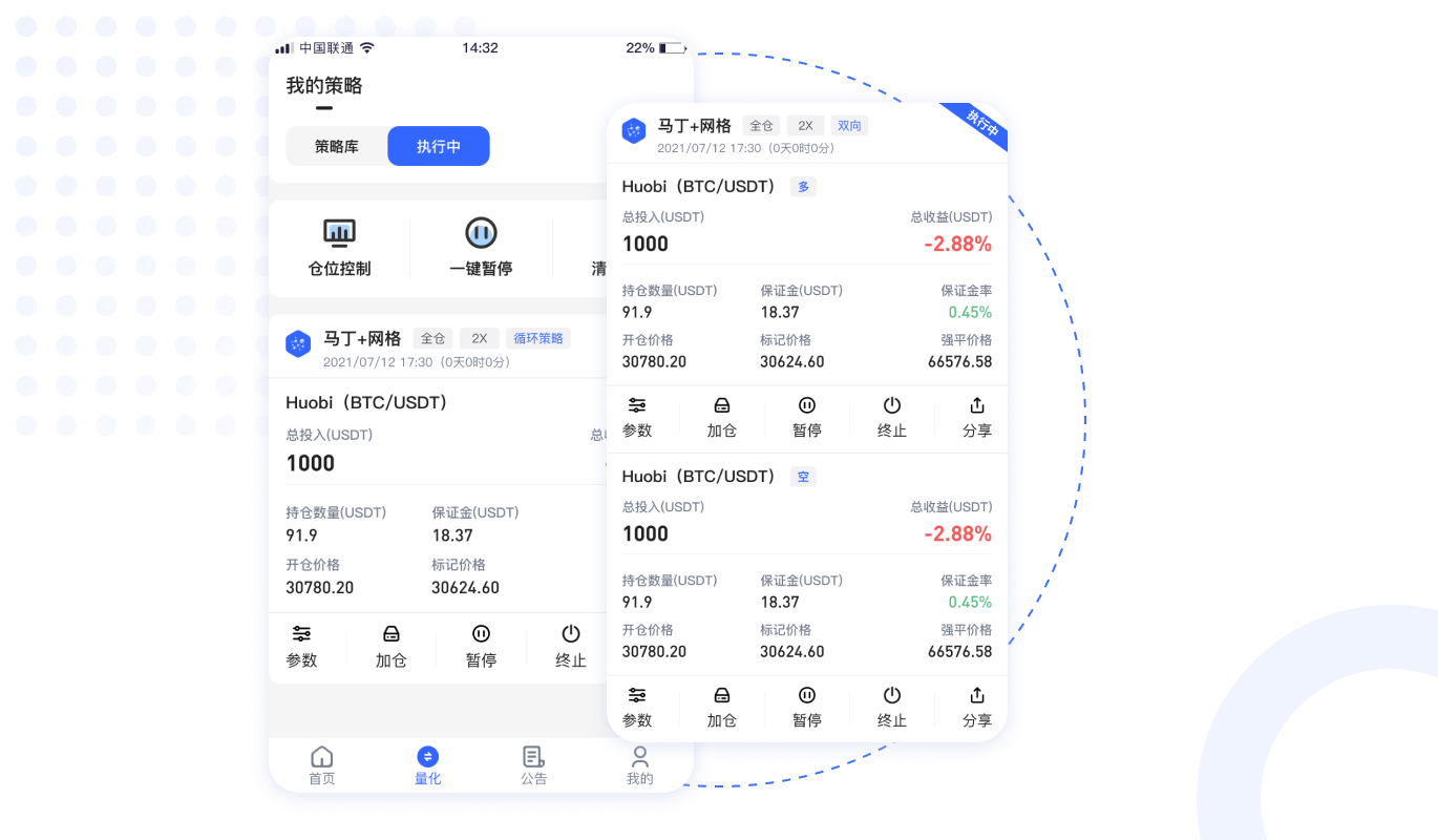 馬丁倍投+網格混合策略、趨勢補倉、尾單補倉、風險控制、防瀑布機制、螺旋式補倉、一鍵補倉,首單加倍。